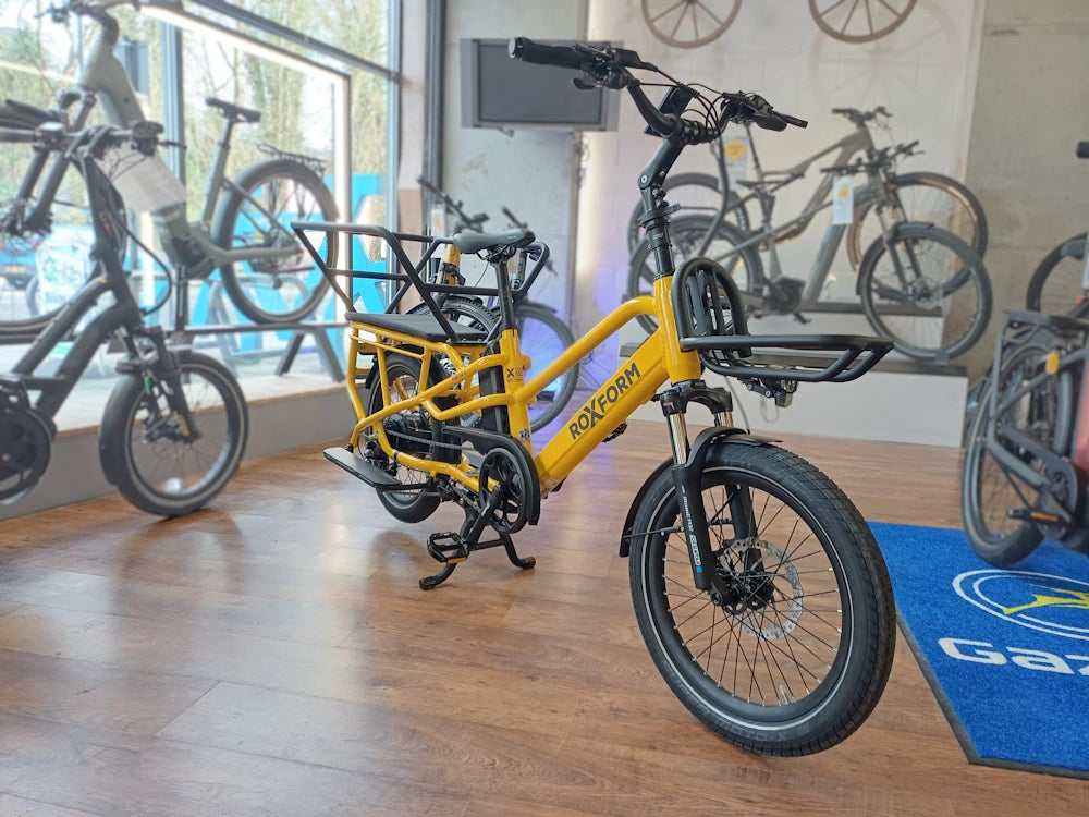 As well as the above features, we think you'll like how comfortable it is. We've noticed that all of the Roxform bikes are very comfortable to ride. The combination of height at the front end, and the quality of the aluminium frames allows seems to take any harshness out of a ride. It also has front suspension that's specially calibrated for cargo bikes.